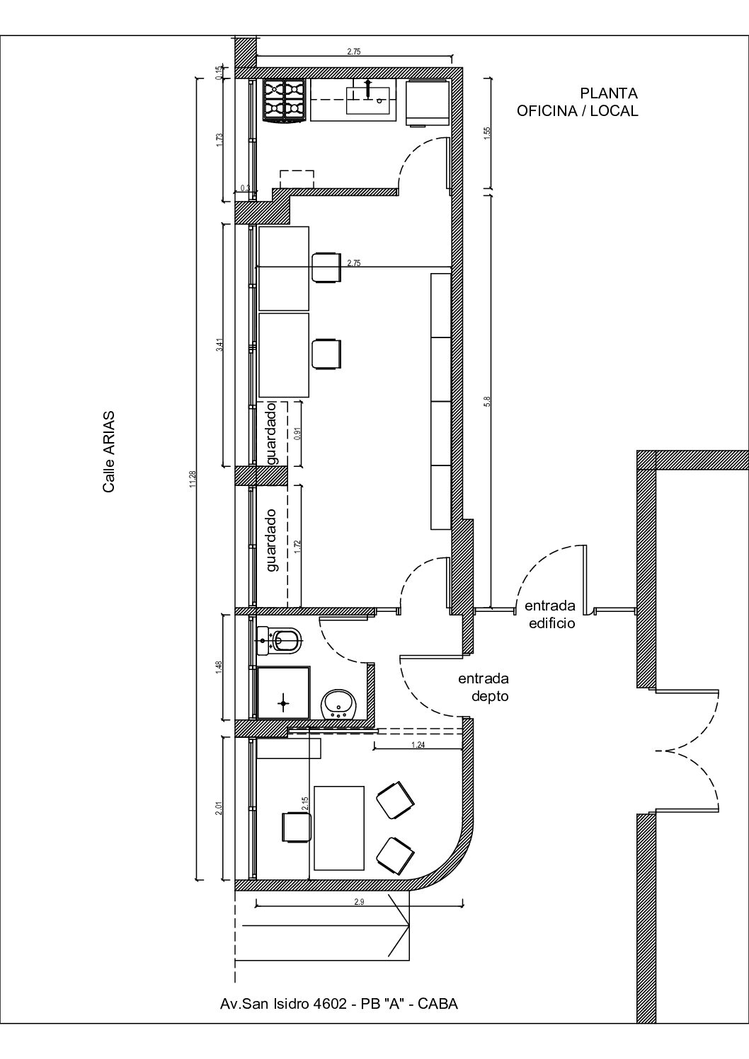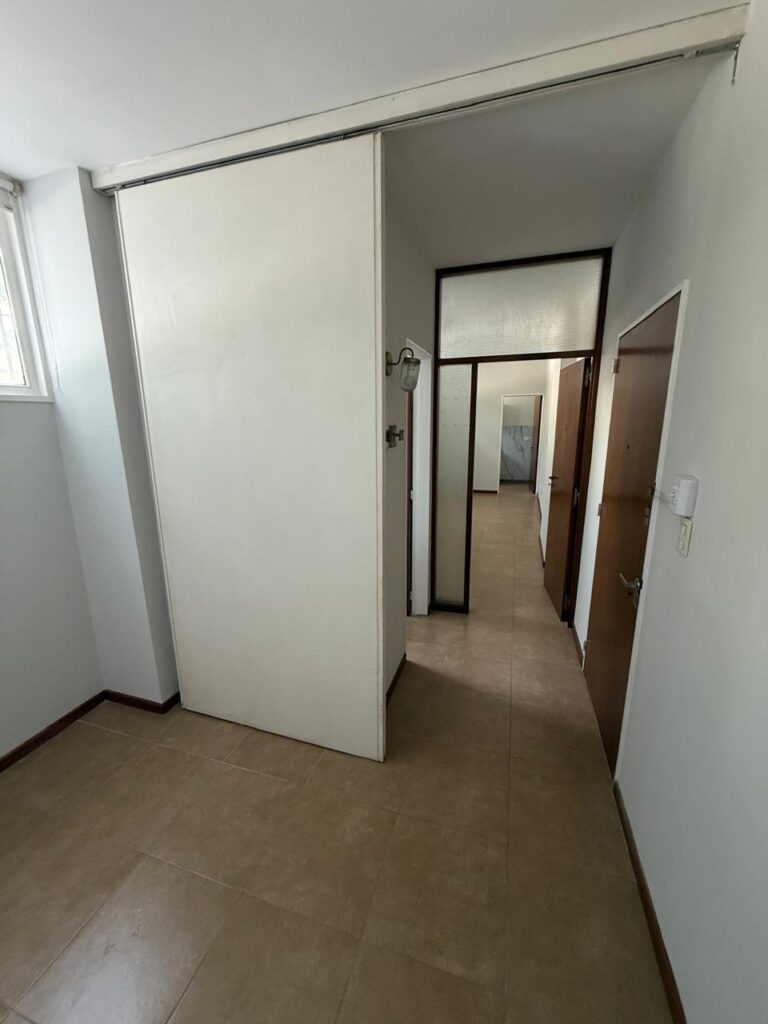 El departamento se desarrolla con un pequeño hall que conduce a la recepción (opcional dormitorio) puerta divisoria y al ambiente principal con puerta de madera, cocina independiente y baño. Se entrega recién pintado de blanco, pisos con revestimientos de cerámicos. Placards de madera. Aire acondicionado frio/ calor ventana.