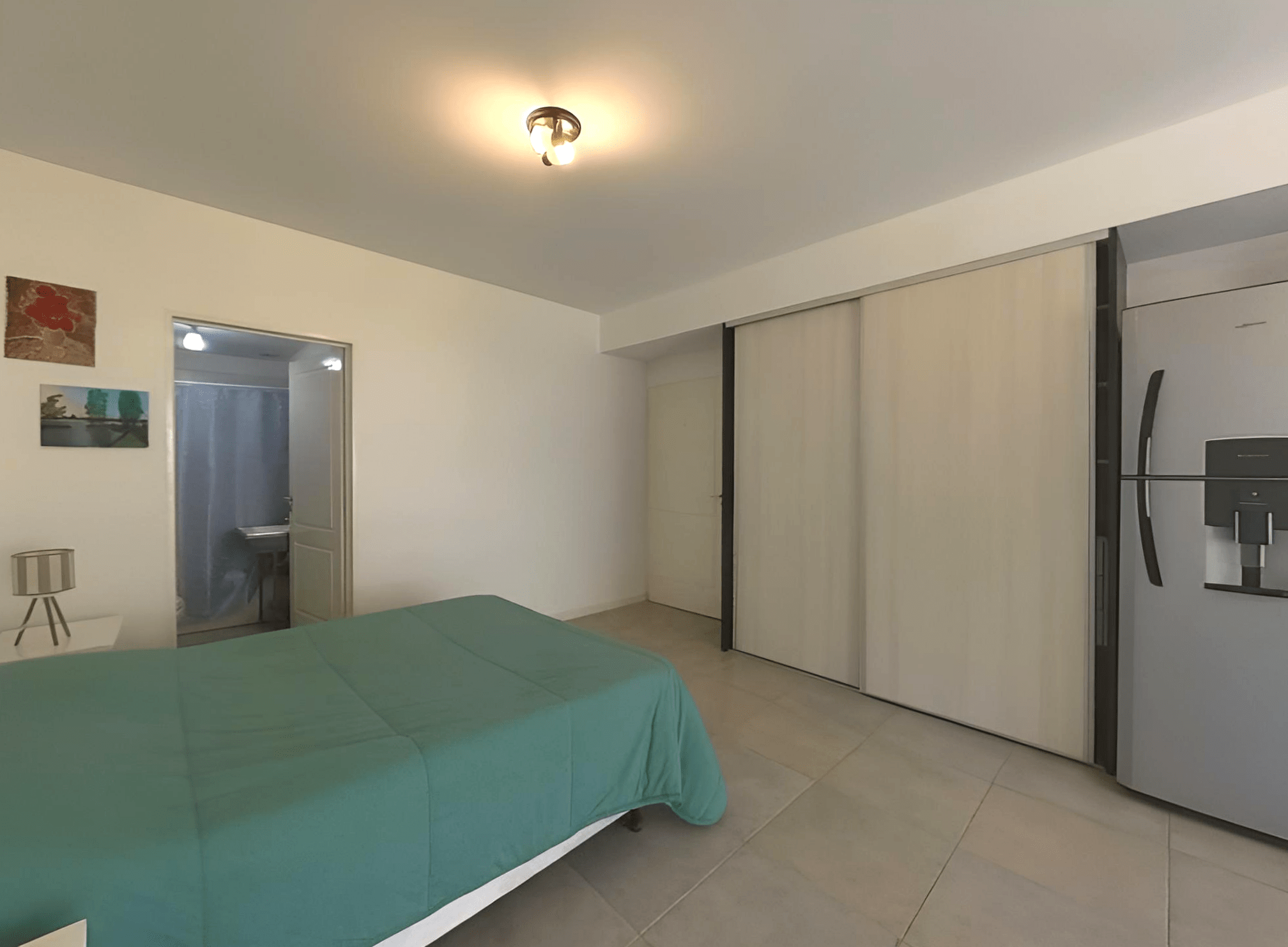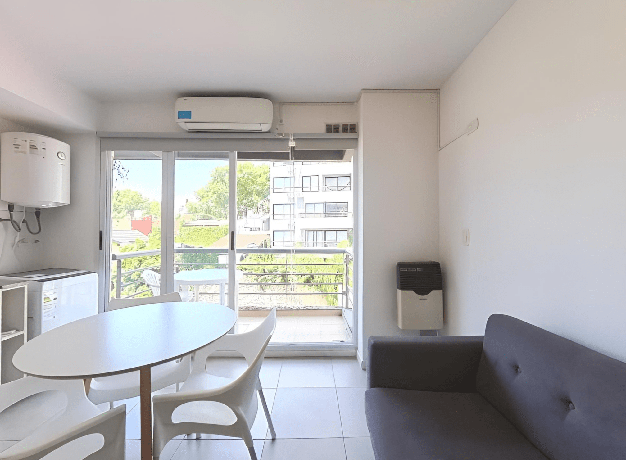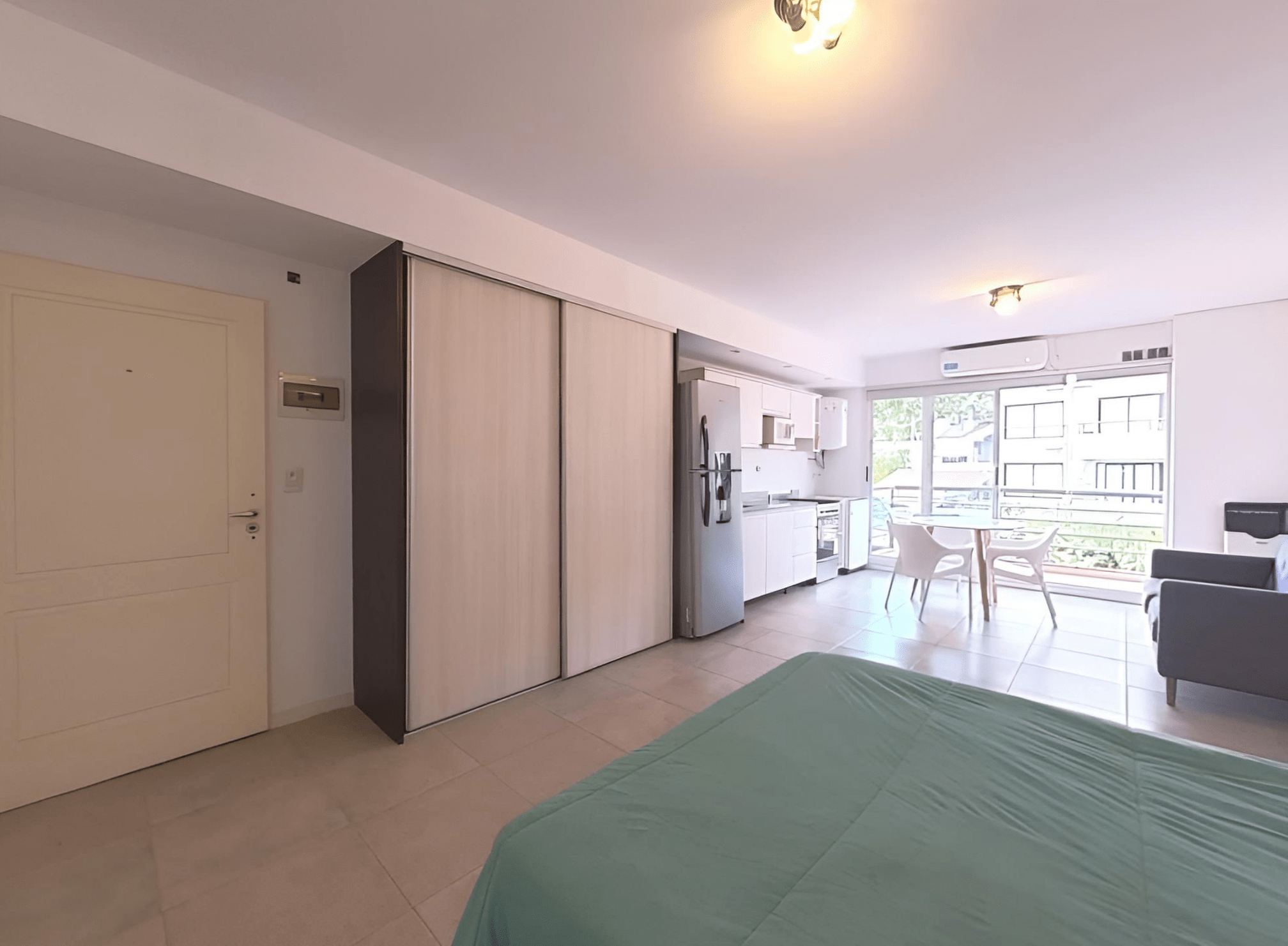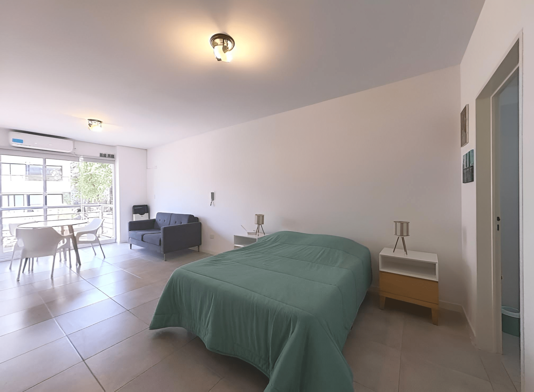 Equipado con cama matrimonial, ropa blanca, mesa sillas, sillón, heladera con freezer, lavarropas, vajilla. Aire frio/calor. Luminaria. Cortinas Black out. Placard de diseño.