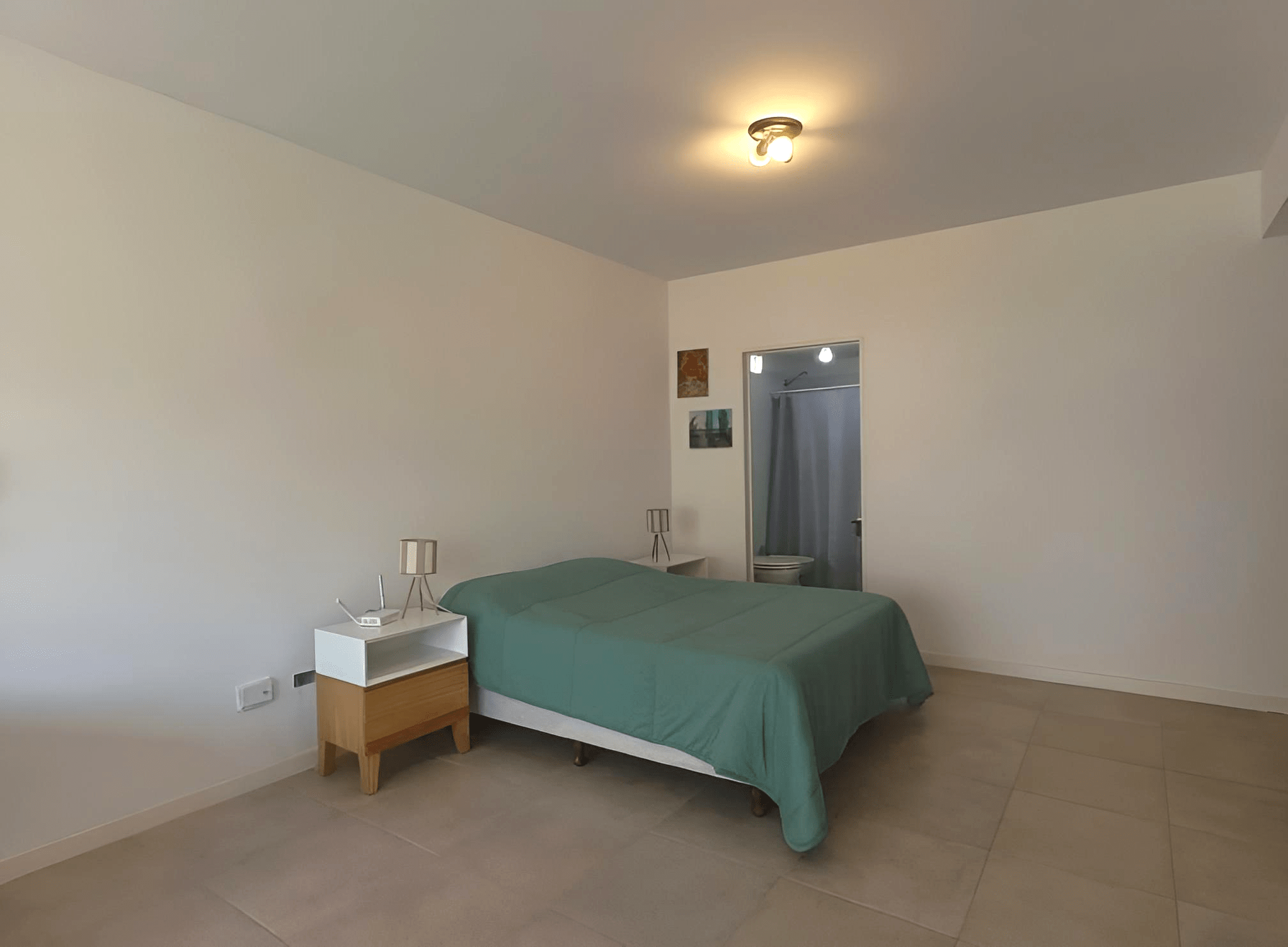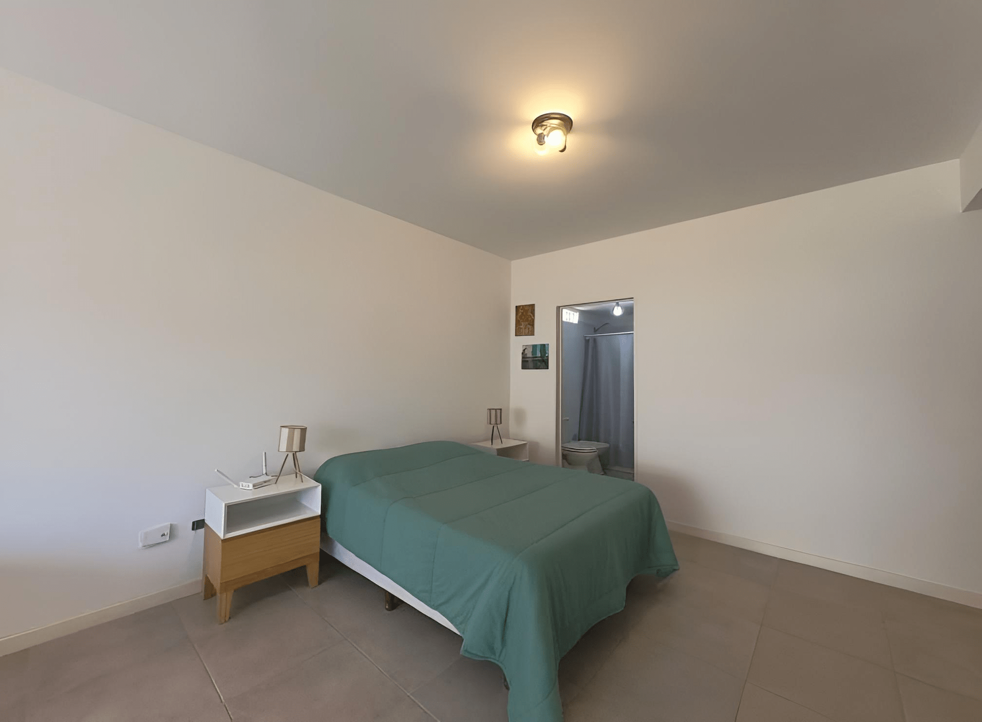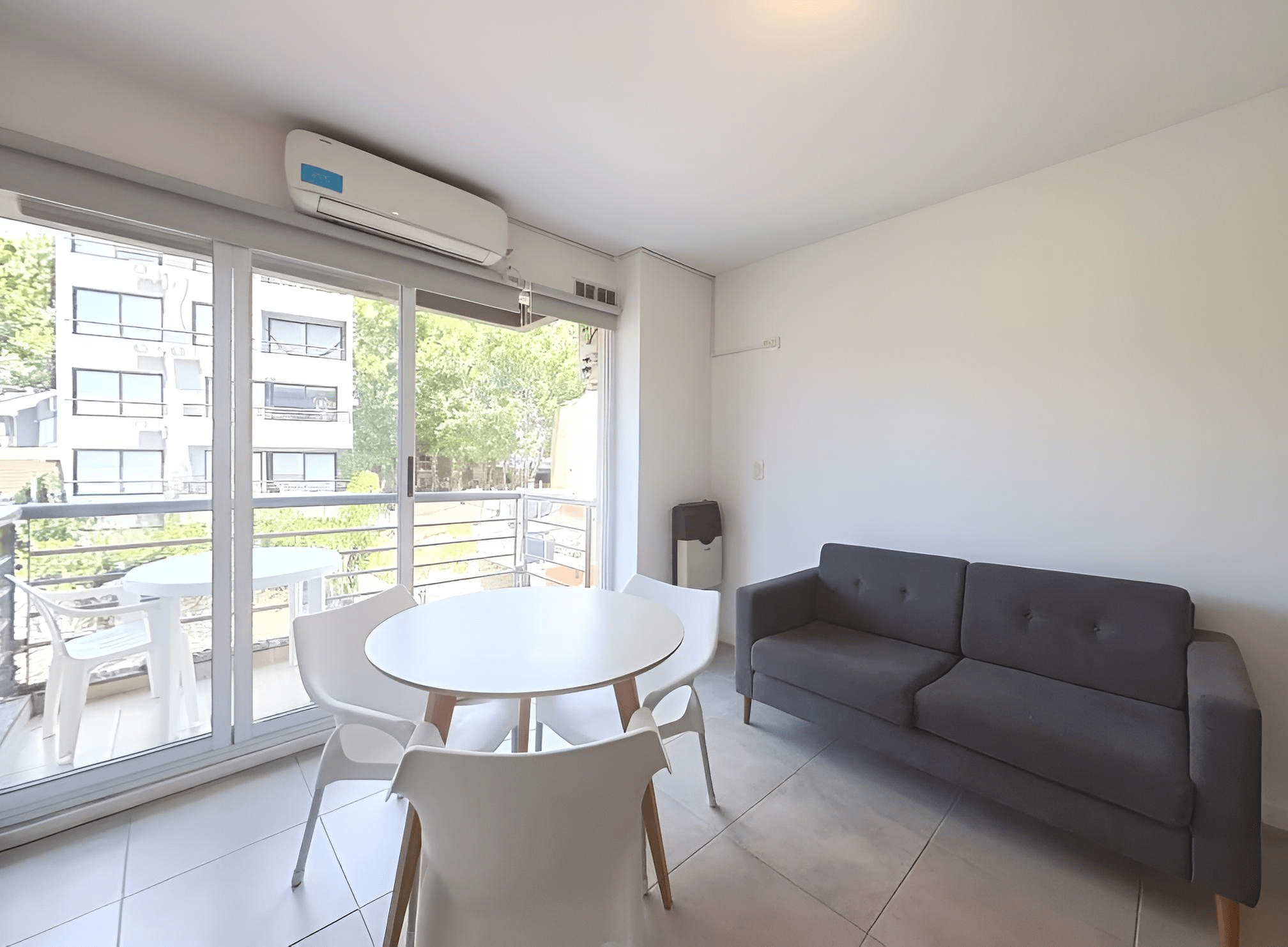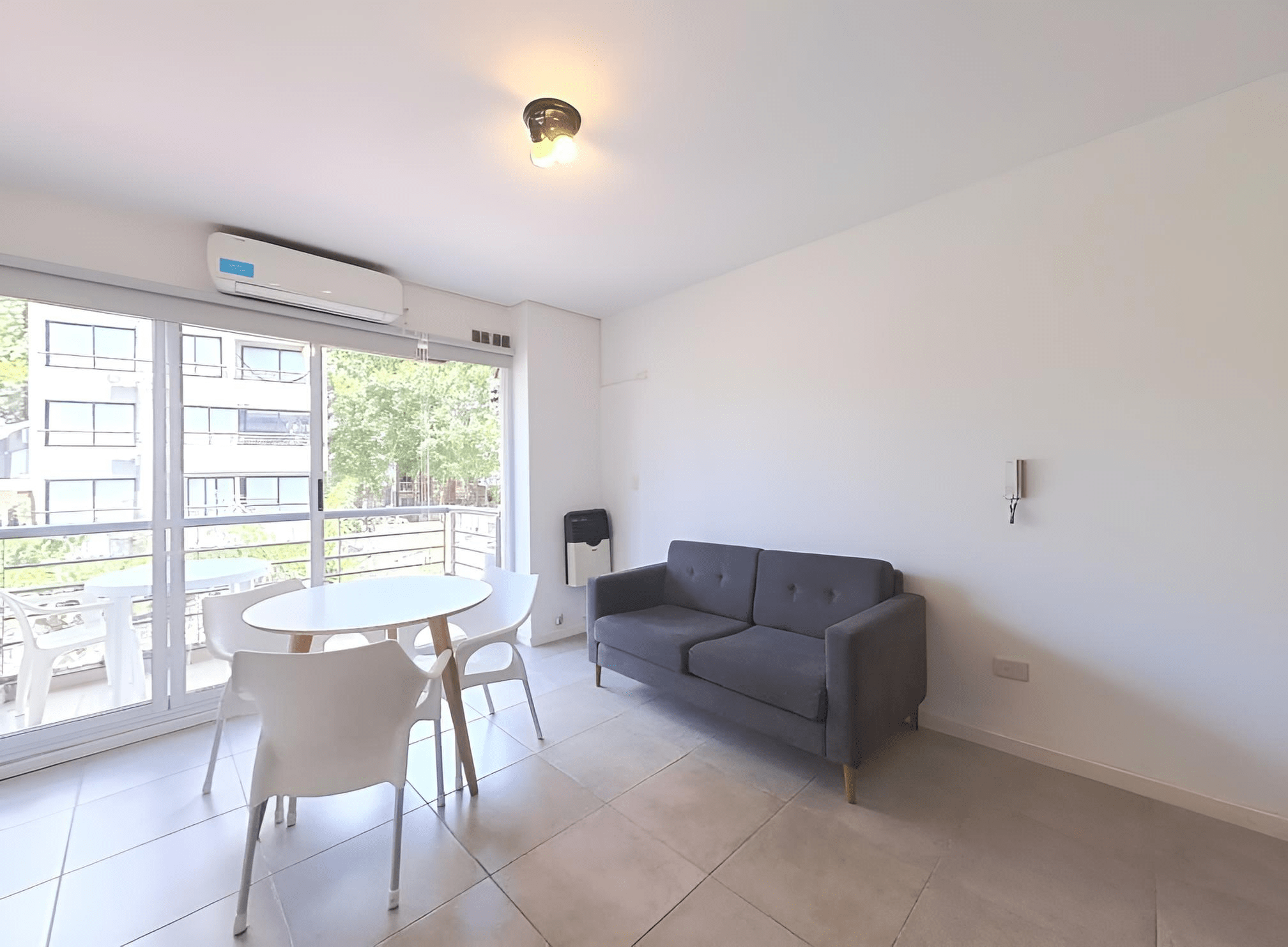 Equipado con cama matrimonial, ropa blanca, mesa sillas, sillón, heladera con freezer, lavarropas, vajilla. Aire frio/calor. Luminaria. Cortinas Black out. Placard de diseño.