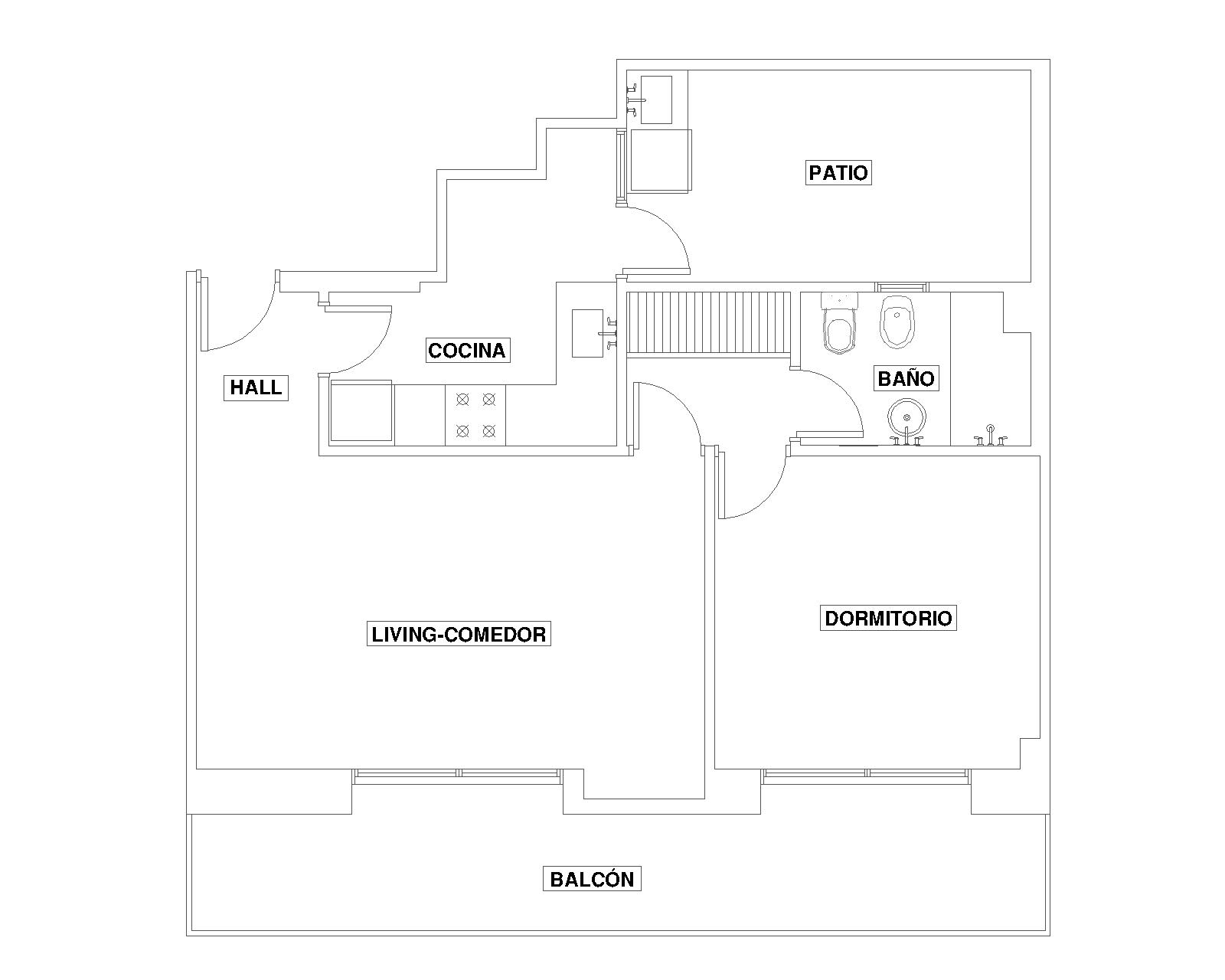 Desde el living se accede a un hall que conduce a la habitación y al baño. En el hall hay un amplio placar empotrado con dos puertas de madera corredizas.