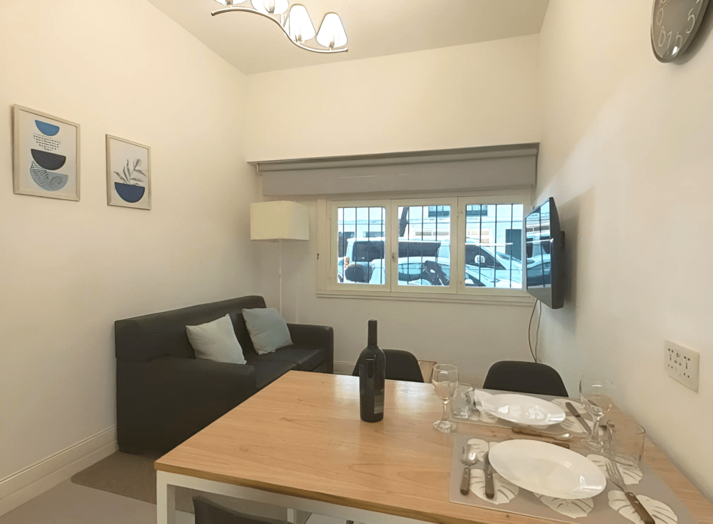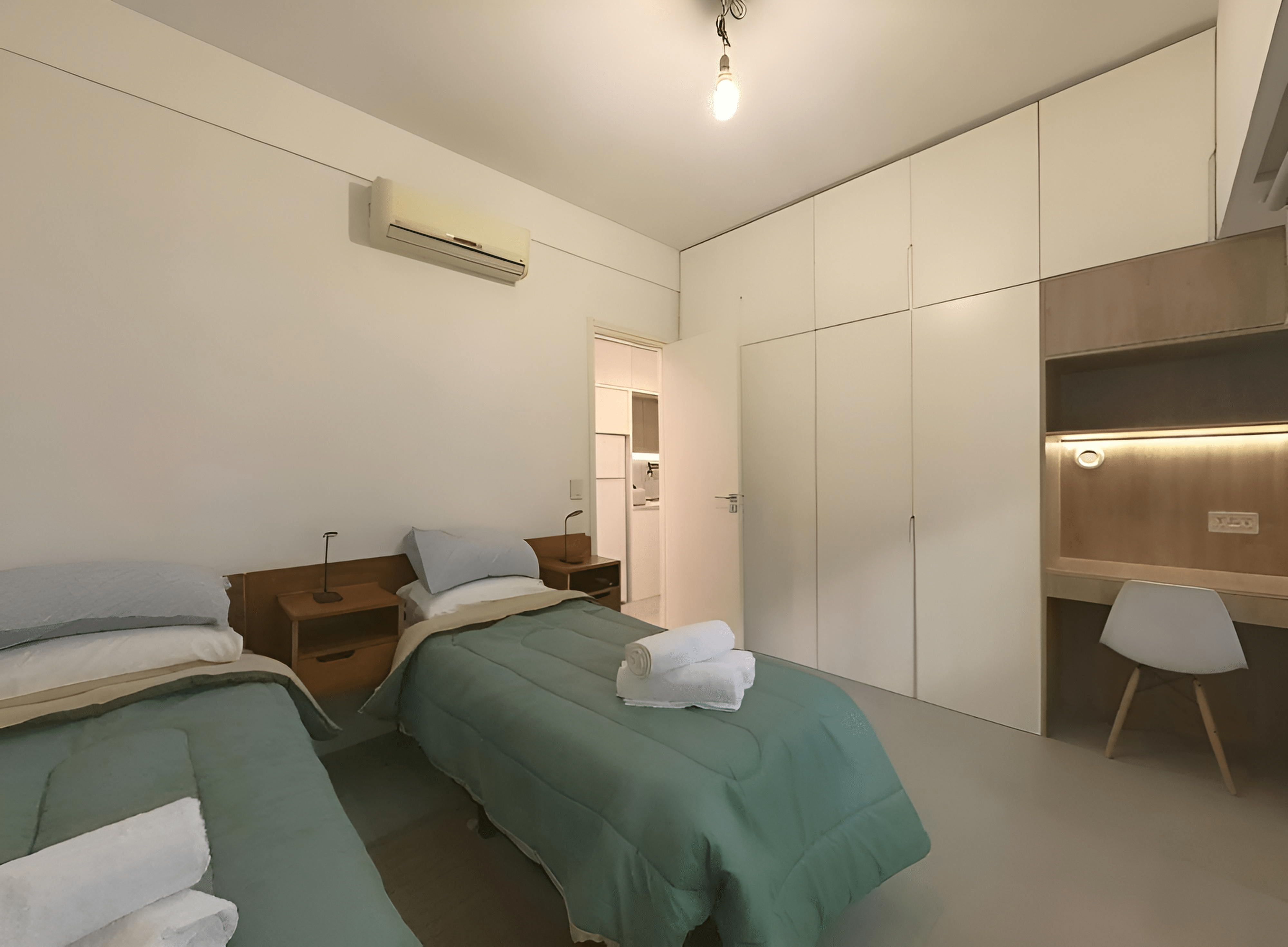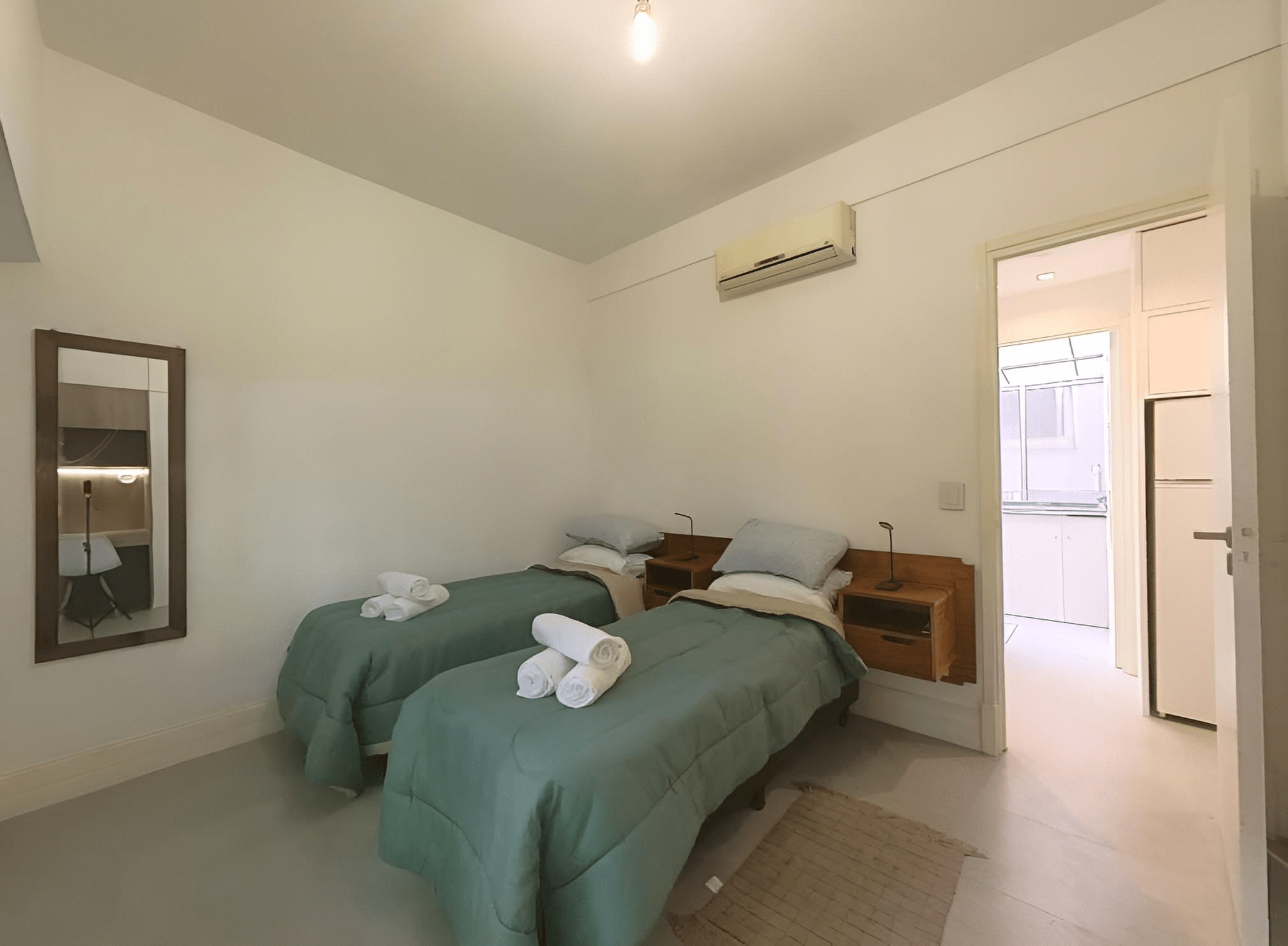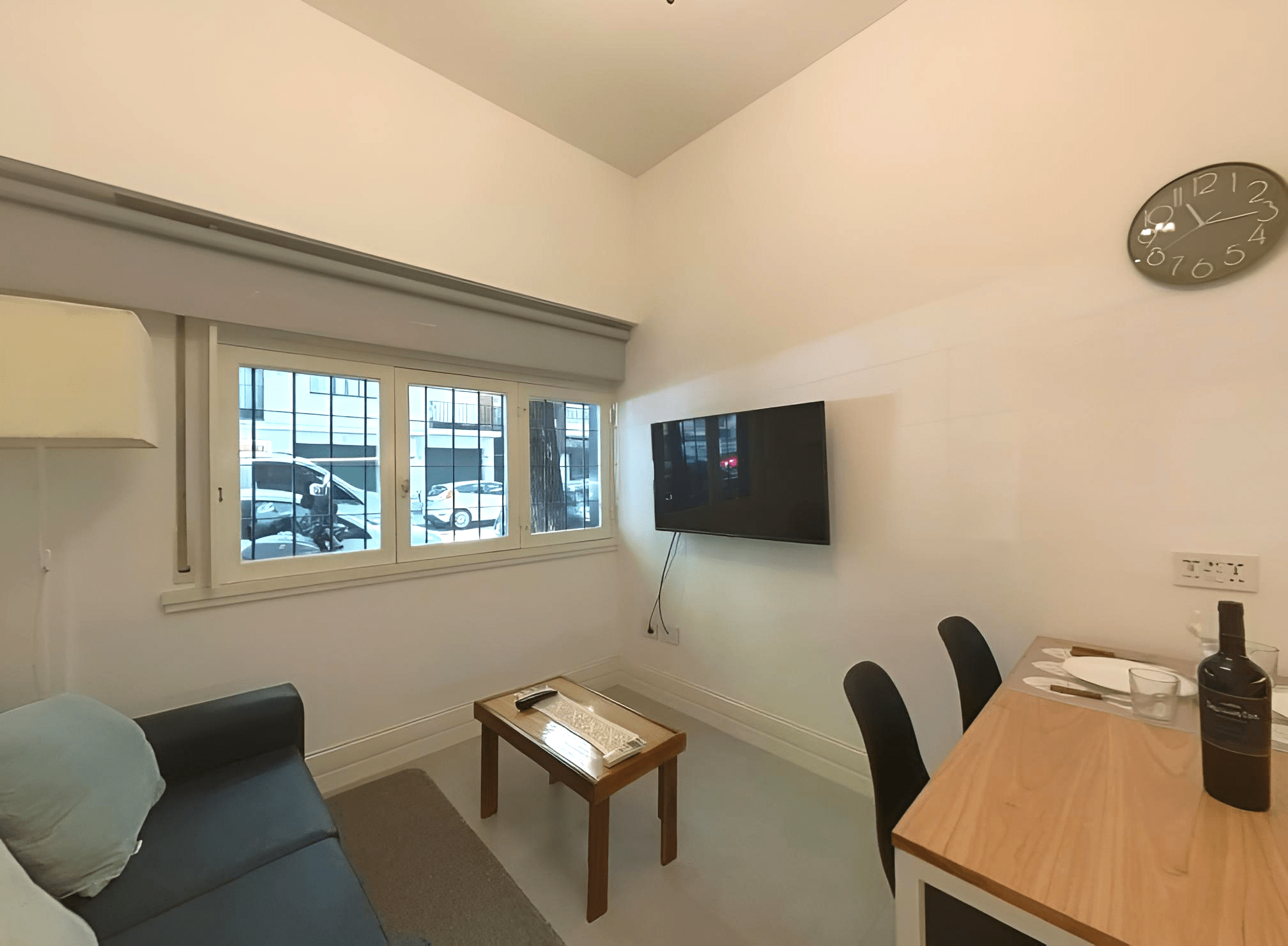 El departamento se encuentra en excelente estado, recién de pintado, pisos de porcelanto, las ventanas y sus marcos son antigüas de madera pintada de blanco, con sus respectivos herrajes persianas de enrollar y rejas. Techos altos. El living comedor tiene mesa, sillas, sofa/ cama, Tv, aire acondicionado frío/calor. La cocina de diseño incorporada al ambiente principal. Desde el living comedor por un hall se accede al dormitorio, al baño y al lavadero. El dormitorio tiene excelentes dimensiones, dos camas sommier individuales que se pueden transformar en cama matrimonial. Amplio placard especialmente diseñado con puertas corredizas, cajonera, espacio de guardado y escritorio, mesas de noche, luminaria. Ropa blanca. Posee amplio ventanal con vista a la calle. Aire acondicionado Frio/ calor. Lavadero techado con lavasecarropas, pileta de acero inoxidable, mueble de guardado. Pequeño patio con sillas. Multimedia con música funcional centralizada. Medidas y fotos 360 orientativas.