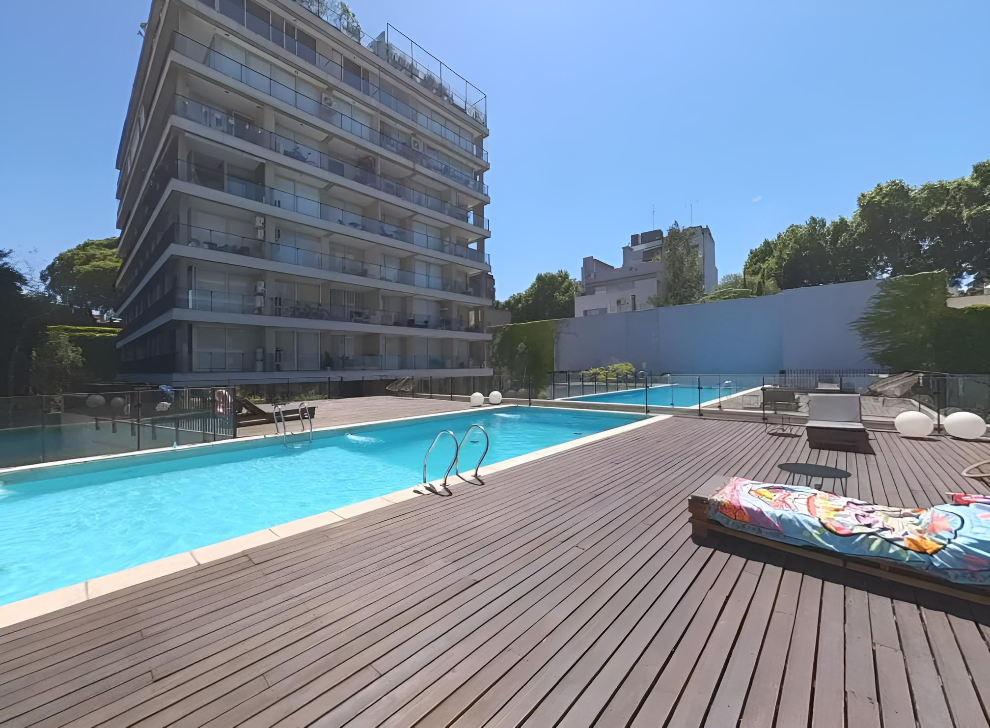 Departamento de diseño en el exclusivo complejo Pont Bleu. Edificio de Categoria con dos Torres. Piso sexto contrafrente. Todo luz. Dos departamentos por Piso. Amenities de lujo, dos pisicinas, gimnasio, sector mini-golf, microcine, sum, parque, laundry. Vigilancia 24 horas. El departamento se desarrolla con un hall de entrada, toilette de recepción, cocina integrada, amplio living-comedor con salita a balcón terraza, dormitorio y baño completo. Superficie estimada: 60 metros cuadrados. Opcional cochera cubierta fija con cargo. Excelentes medios de transporte. Cerca de la Avenida Coronel Diaz. Alto Palermo. Subte D. Varias líneas de colectivos: 26, 36, 39, 92, 99, 106, 109, 128, 140, 151, 160, 168