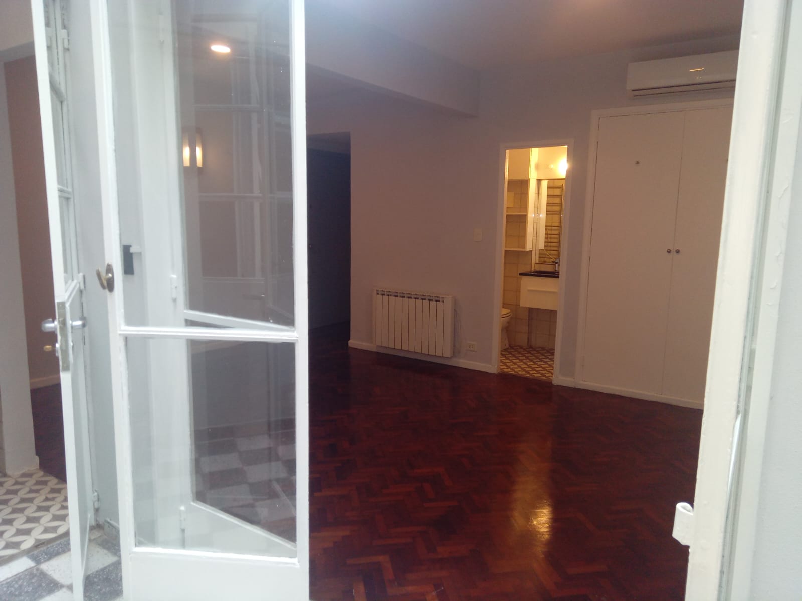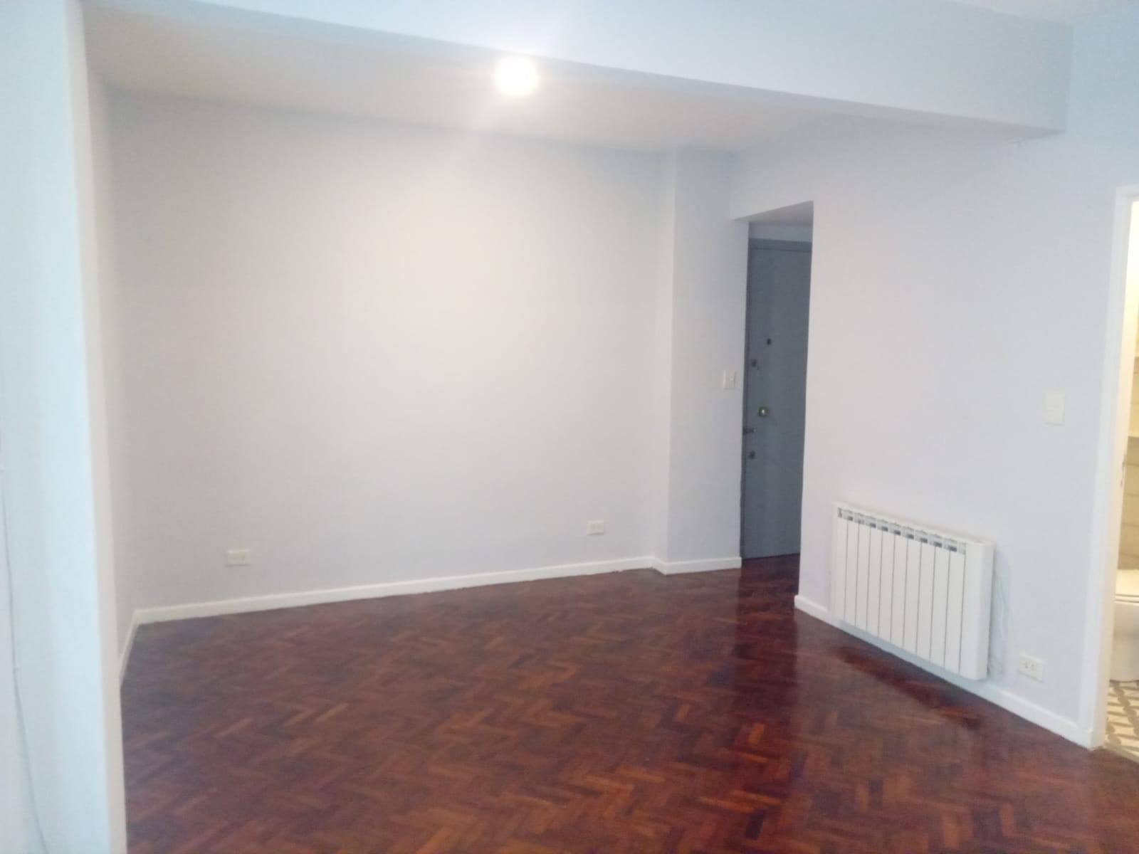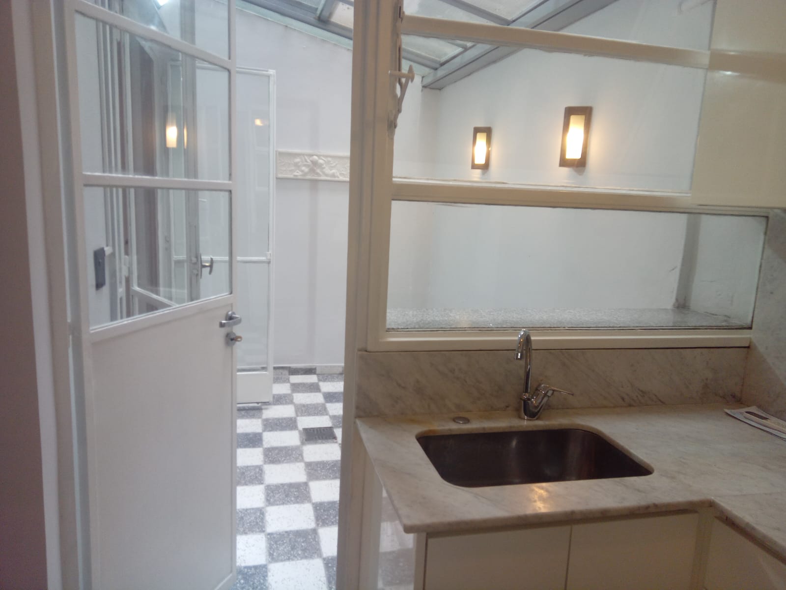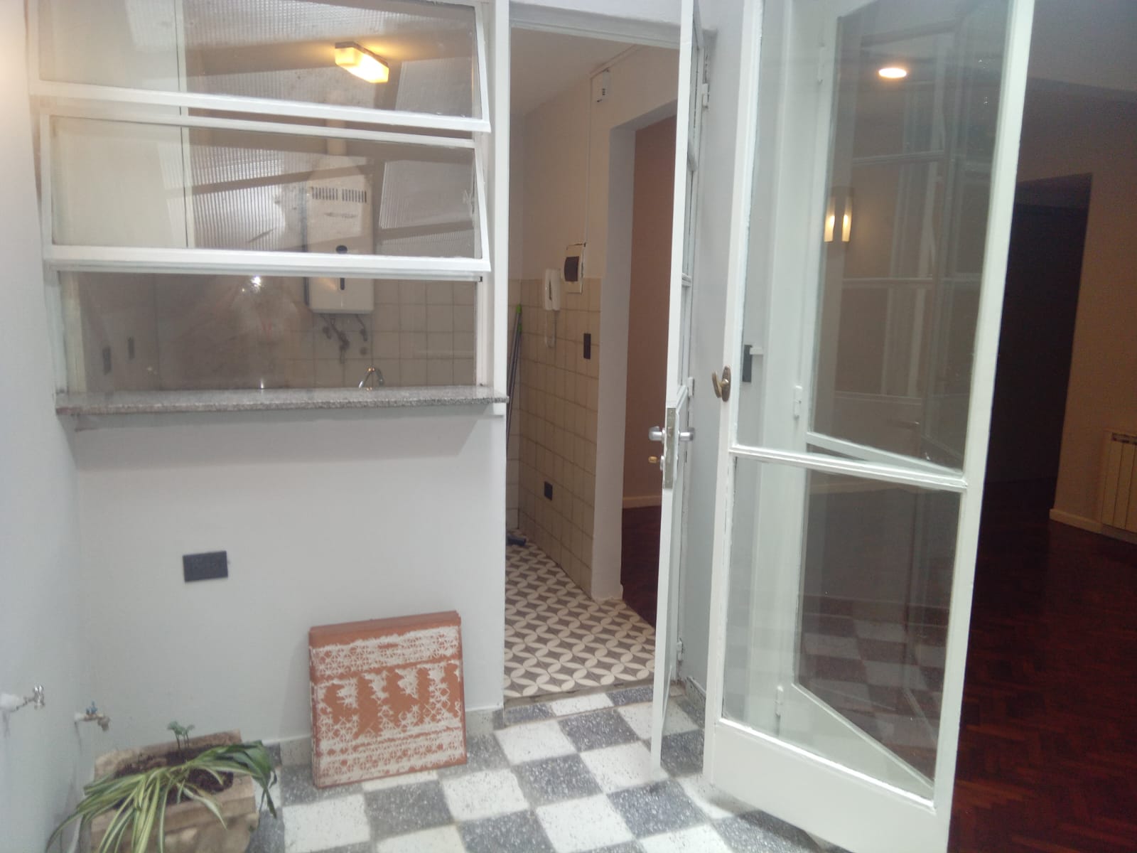 El ambiente principal tiene un hall de recepción, amplio living comedoor( 5,6m x 2,3m) con salida al pintoresco patio, con pisos dameros, techado (3m x 2 m). Placard empotrado con divisiones y espacio de guardado. Los pisos son de madera. Recién pintado. Aire acondicionado. Luminaria en todos los ambientes y en el patio. Lavadero indendpiente techado.