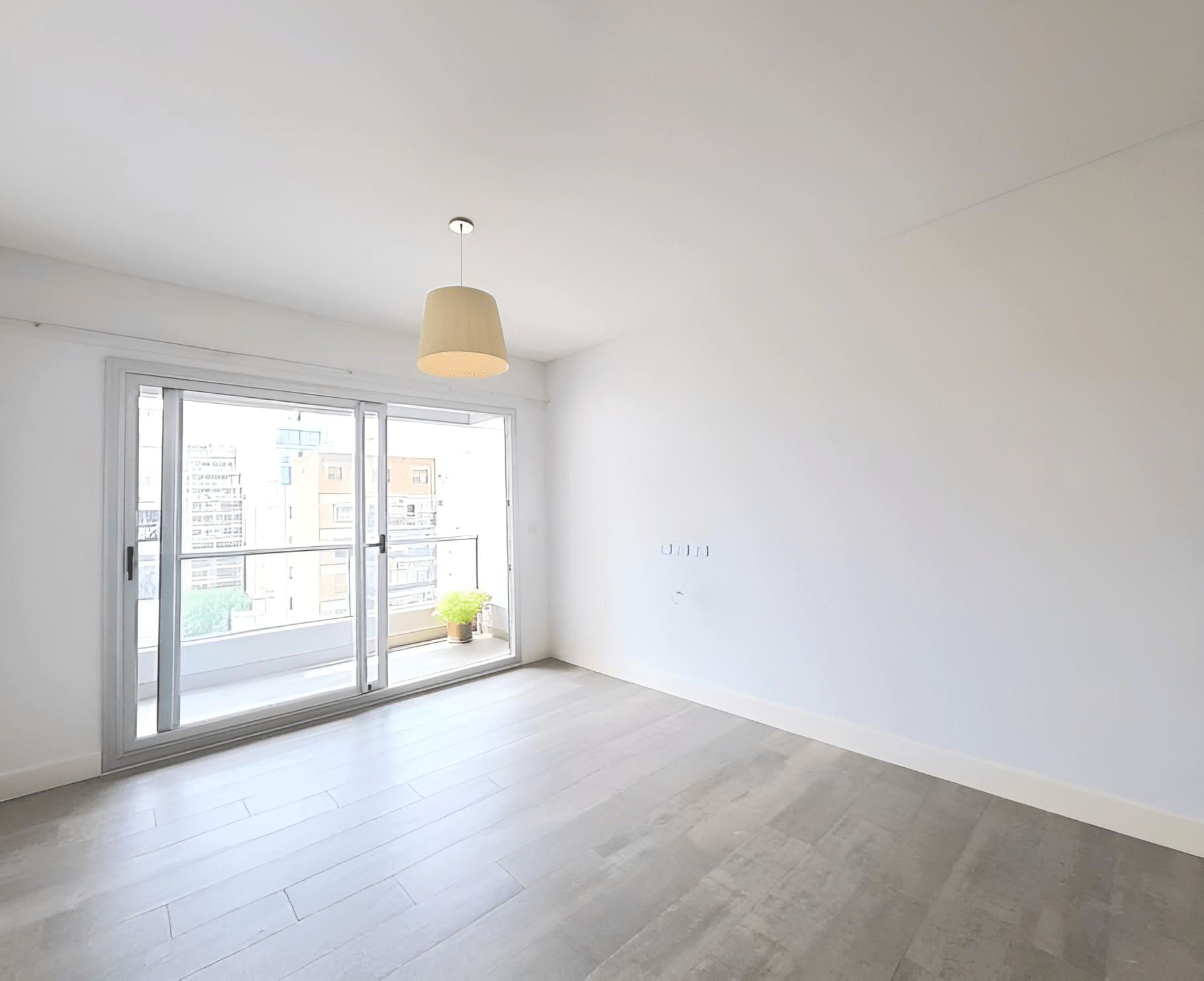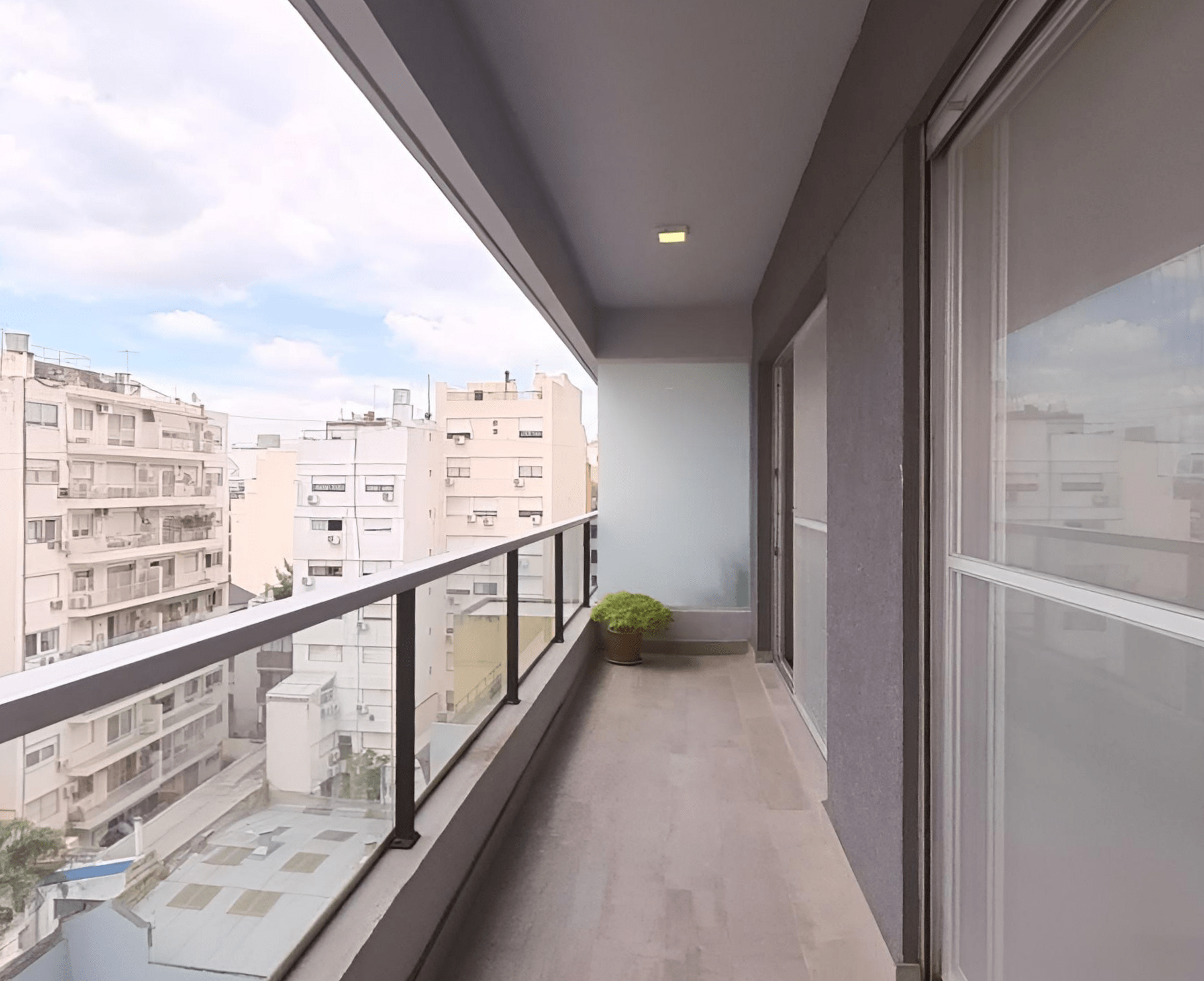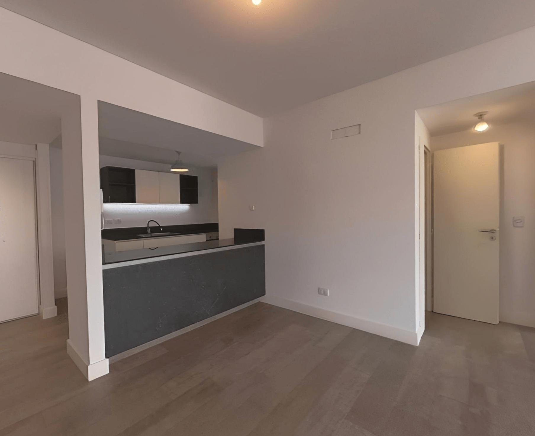 El departamento se desarrolla con un amplio living comedor(5.1m x 6.1m), placar de recepción, cocina incorporada, espacio breakfast, ventanales de PVC con mosquiteros. Amplio balcón corrido con vista abierta. Desde la cocina se accede al lavadero. Baño de recepción. Dormitorio (3.3m x 3.1m) en suite con salida a balcón corrido. Vestidor (1.5m x 2.1m) con estantes, cajoneras y espacio de guardado. Baño completo. Las paredes están pintadas de blanco y los pisos tienen revestimientos de porcelanato. Cerradura electrónica.Amplia baulera y cochera cubierta en planta baja. Importante Sum con parrilla, baños y cocina. Gimnasio con máquinas de última generación. Piscina y solárium. Pre-intalaciòn para aire acondicionados.