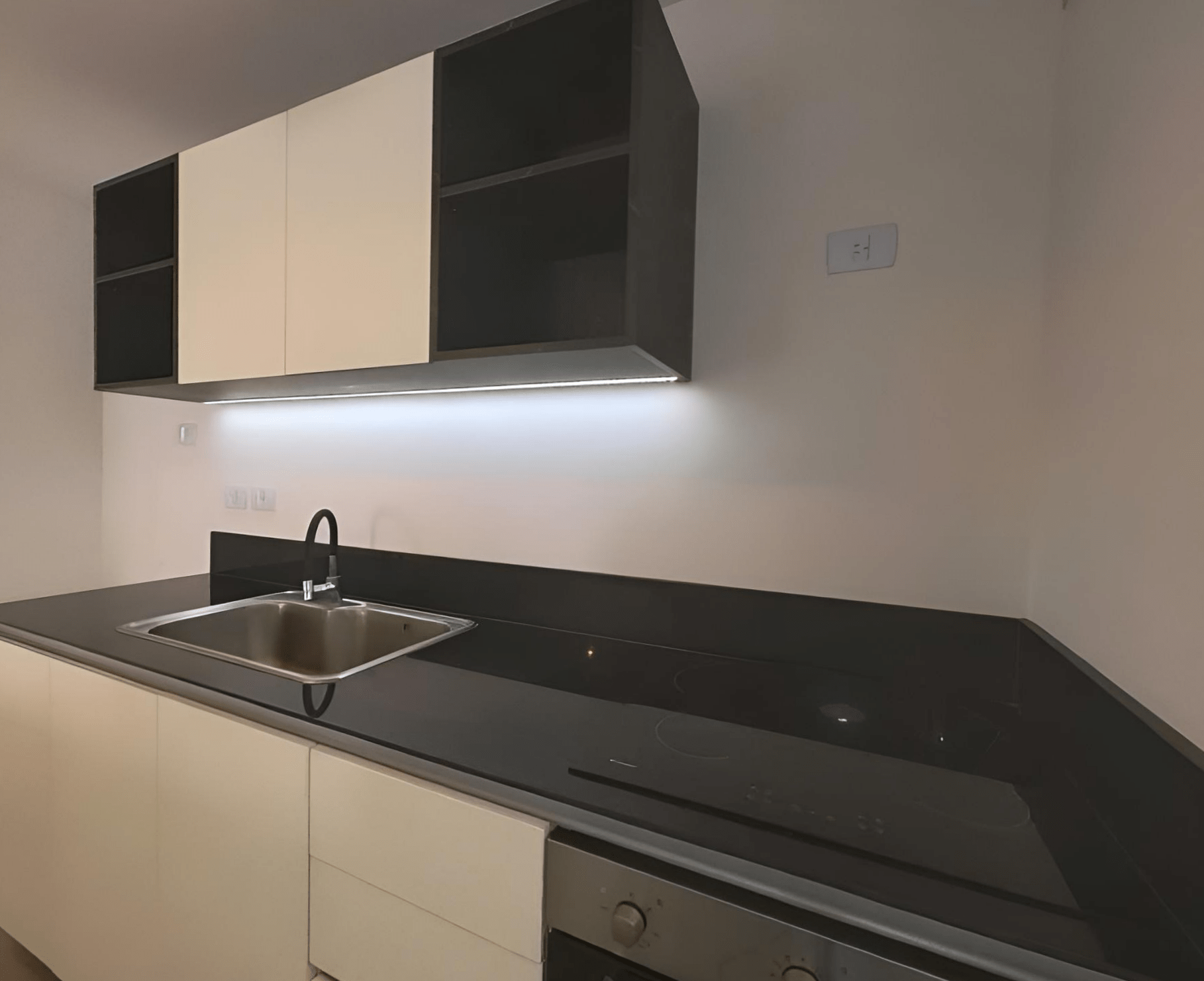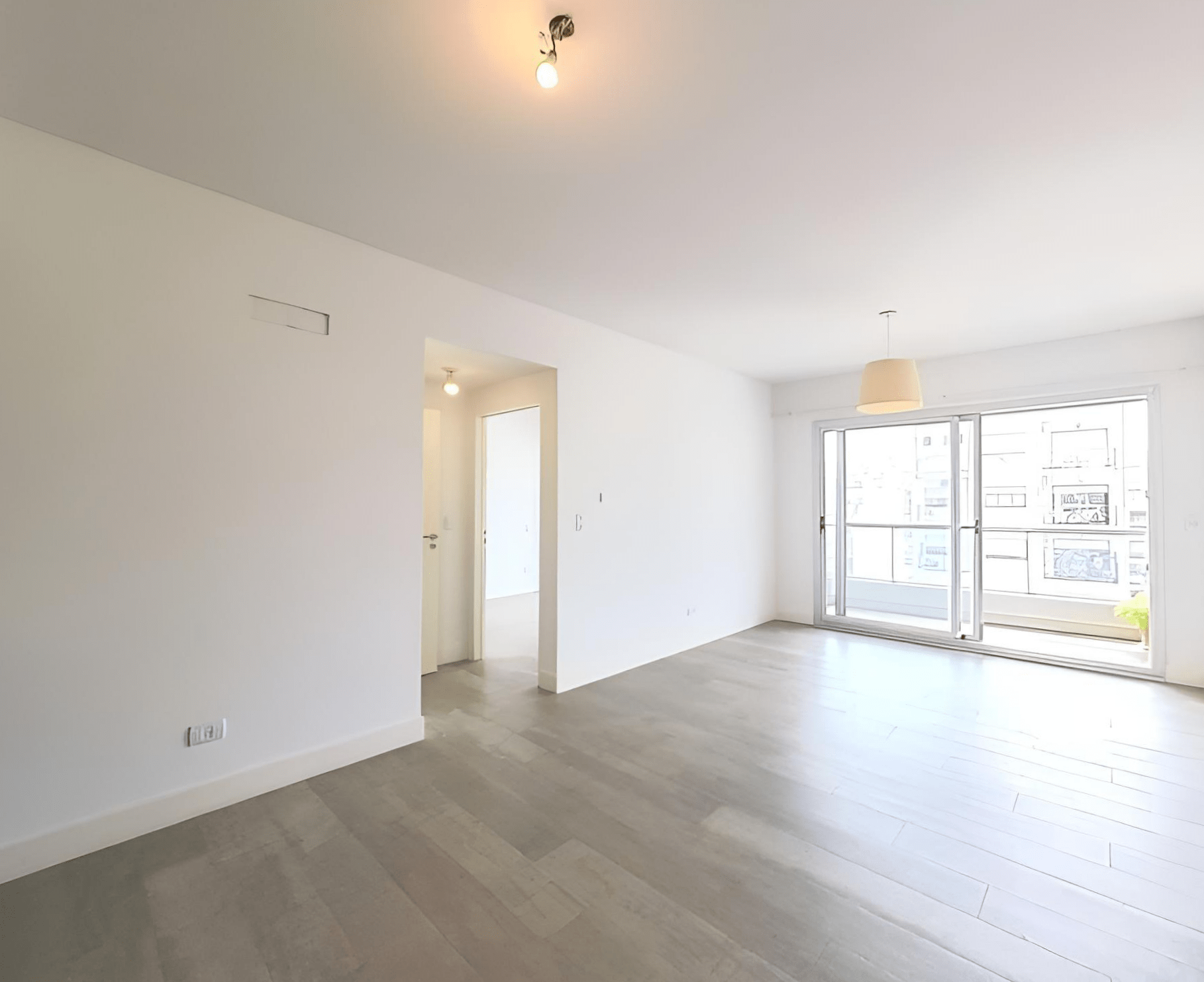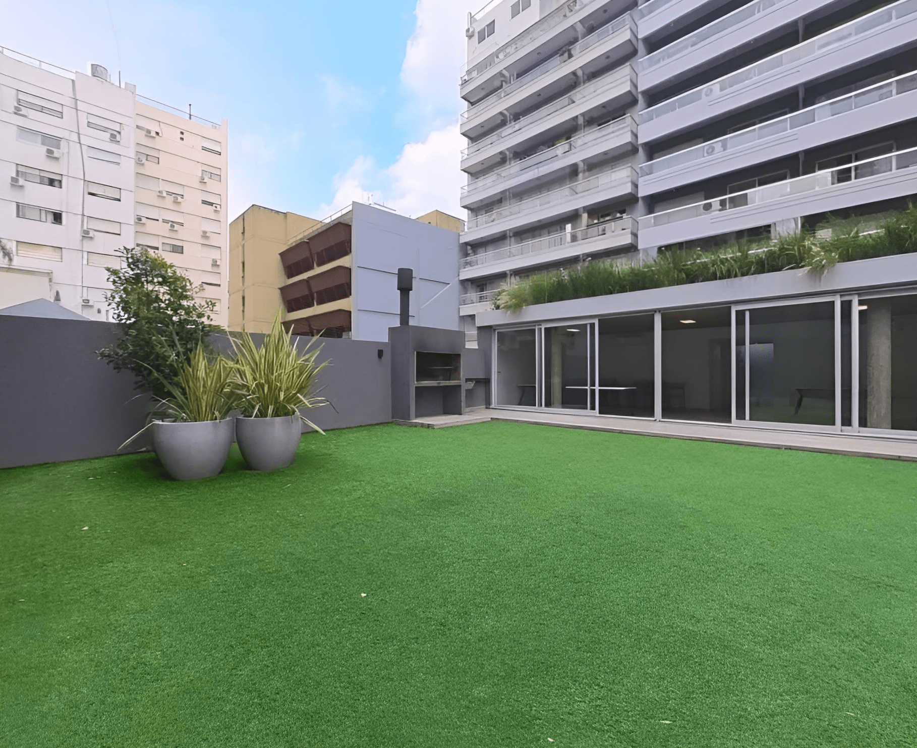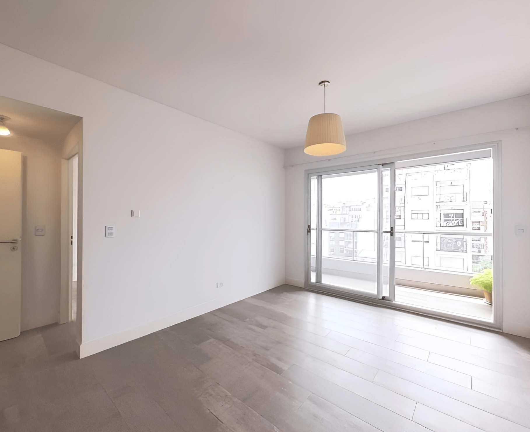 El departamento se desarrolla con un amplio living comedor(5.1m x 6.1m), placar de recepción, cocina incorporada, espacio breakfast, ventanales de PVC con mosquiteros. Amplio balcón corrido con vista abierta. Desde la cocina se accede al lavadero. Baño de recepción. Dormitorio (3.3m x 3.1m) en suite con salida a balcón corrido. Vestidor (1.5m x 2.1m) con estantes, cajoneras y espacio de guardado. Baño completo. Las paredes están pintadas de blanco y los pisos tienen revestimientos de porcelanato. Cerradura electrónica.Amplia baulera y cochera cubierta en planta baja. Importante Sum con parrilla, baños y cocina. Gimnasio con máquinas de última generación. Piscina y solárium. Pre-intalaciòn para aire acondicionados.